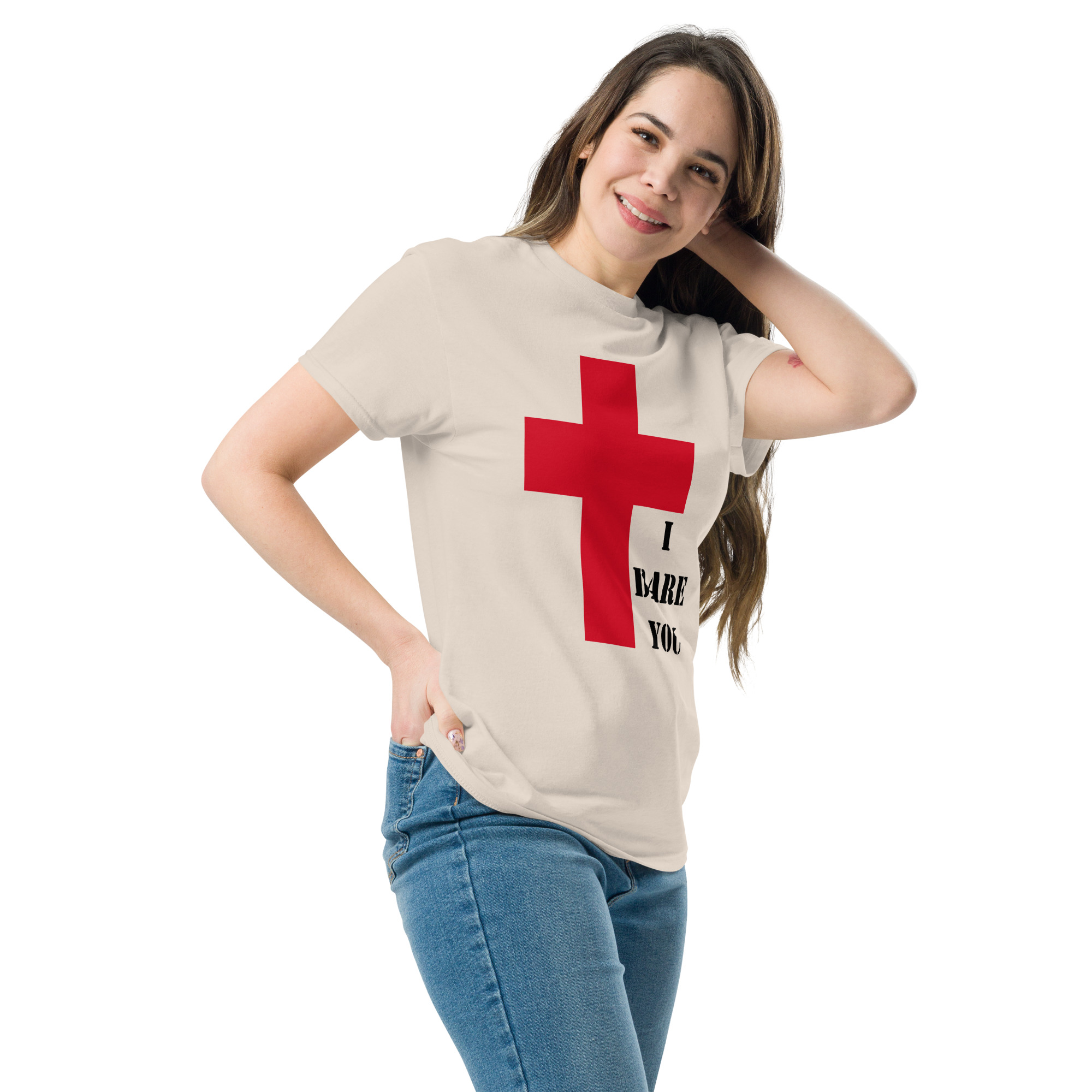 An even more comfortable version of our “I Dare You” T-shirt – Dare them to take your right to proudly raise the flag in pure cotton!